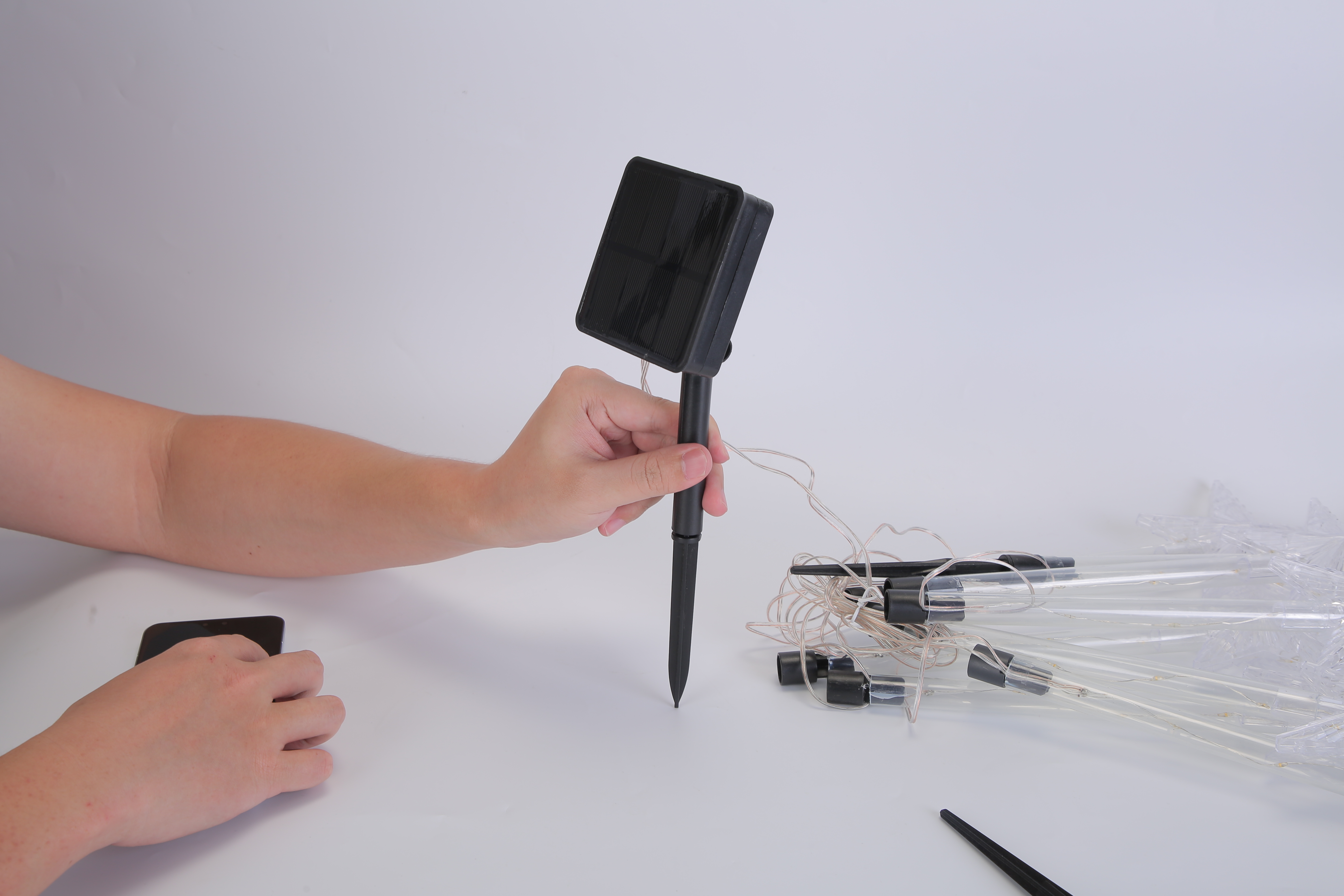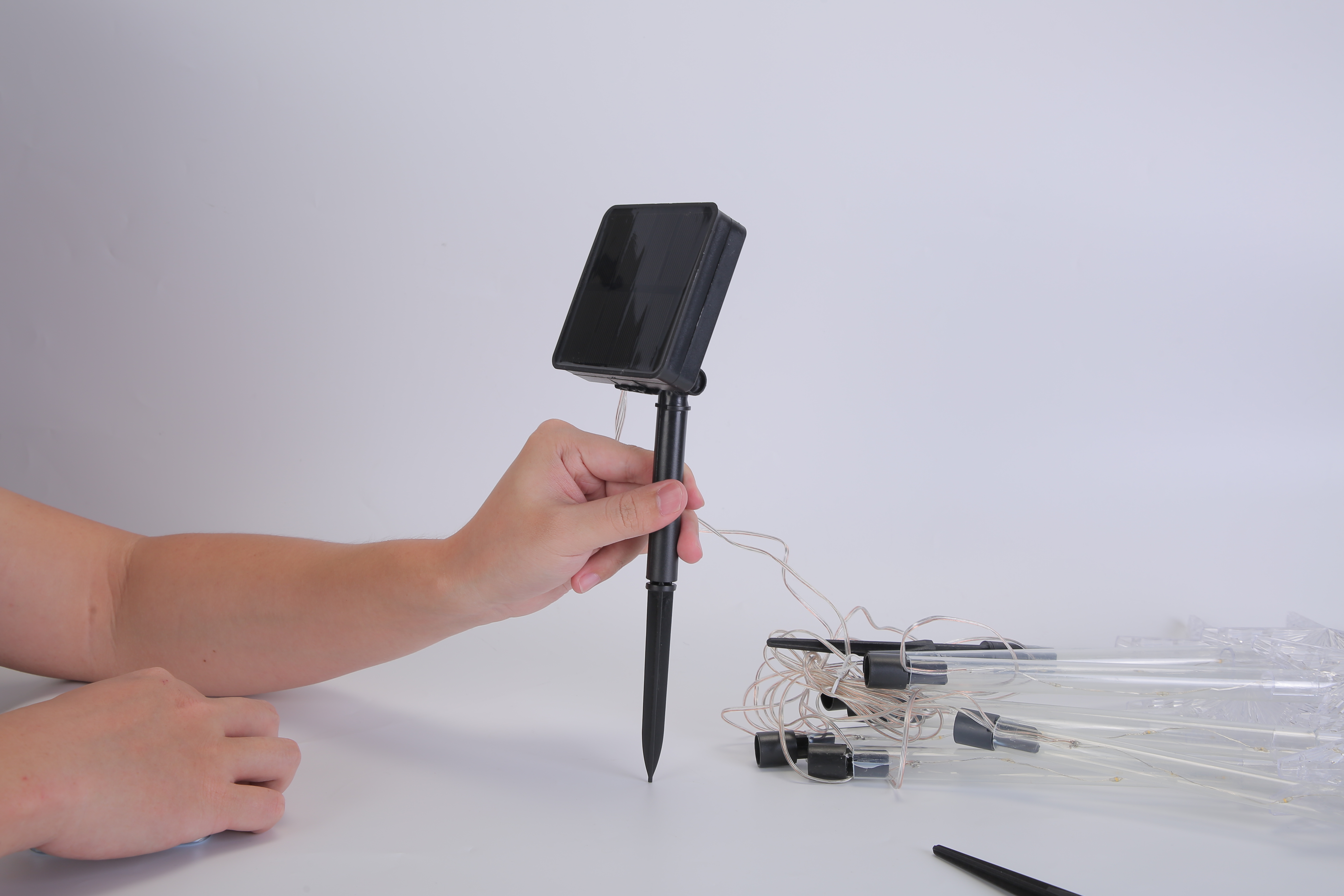*Easy to Use*:No wiring or external electricity required,just connect the stakes and stick the lights into the ground and keep the solar panel in a good position to receive the maximum sunlight.
